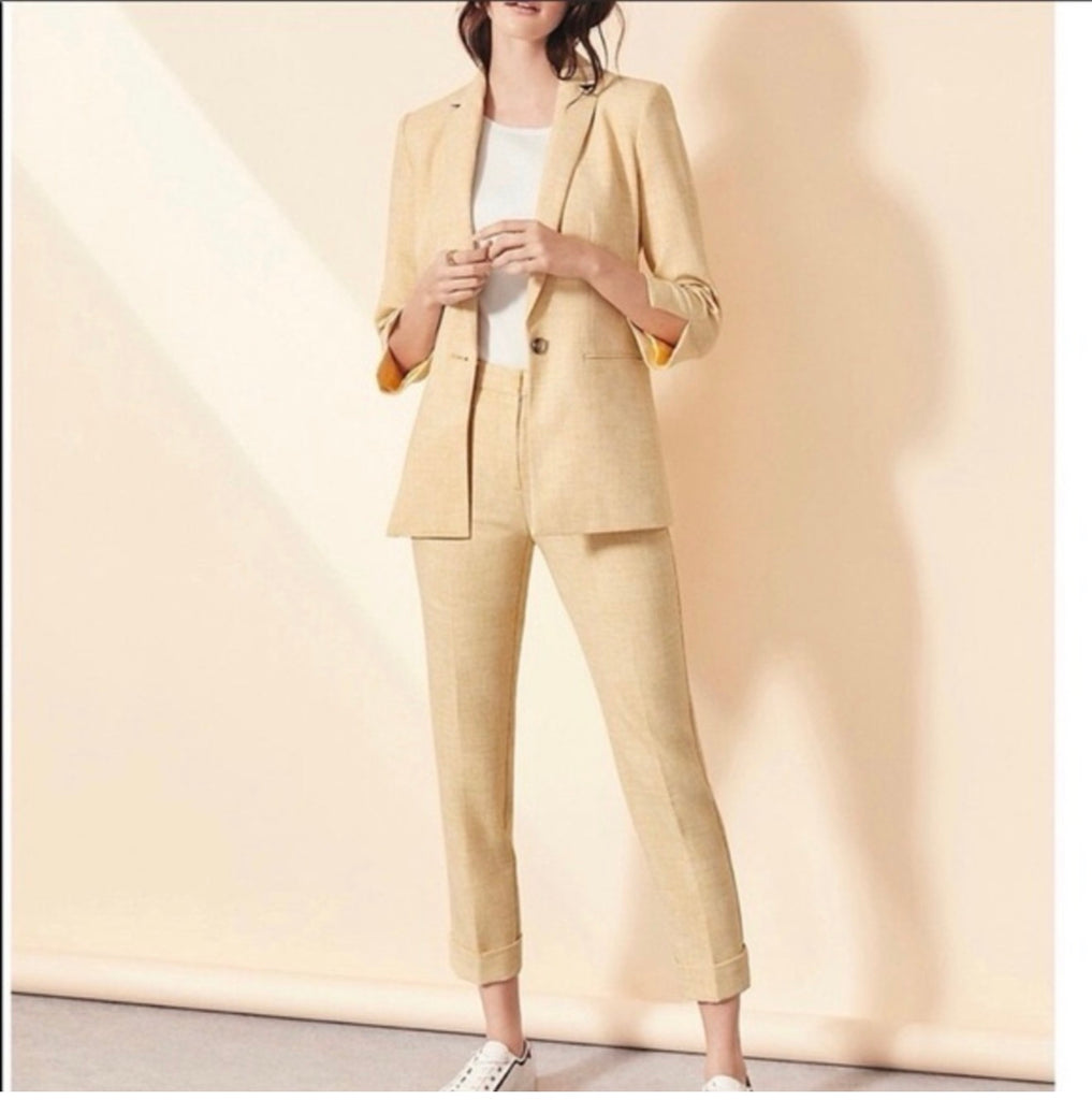 ANN TAYLOR yellow crosshatch cuffed ankle and Blazer. suit 2 pc