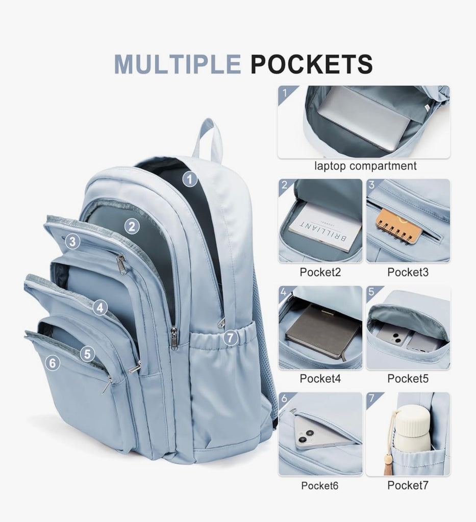Spacious & Organized: Features a large main compartment, a roomy secondary pocket, and multiple small and medium-sized pockets. Perfect for textbooks, laptops, stationery, weekend trips, and everyday essentials.