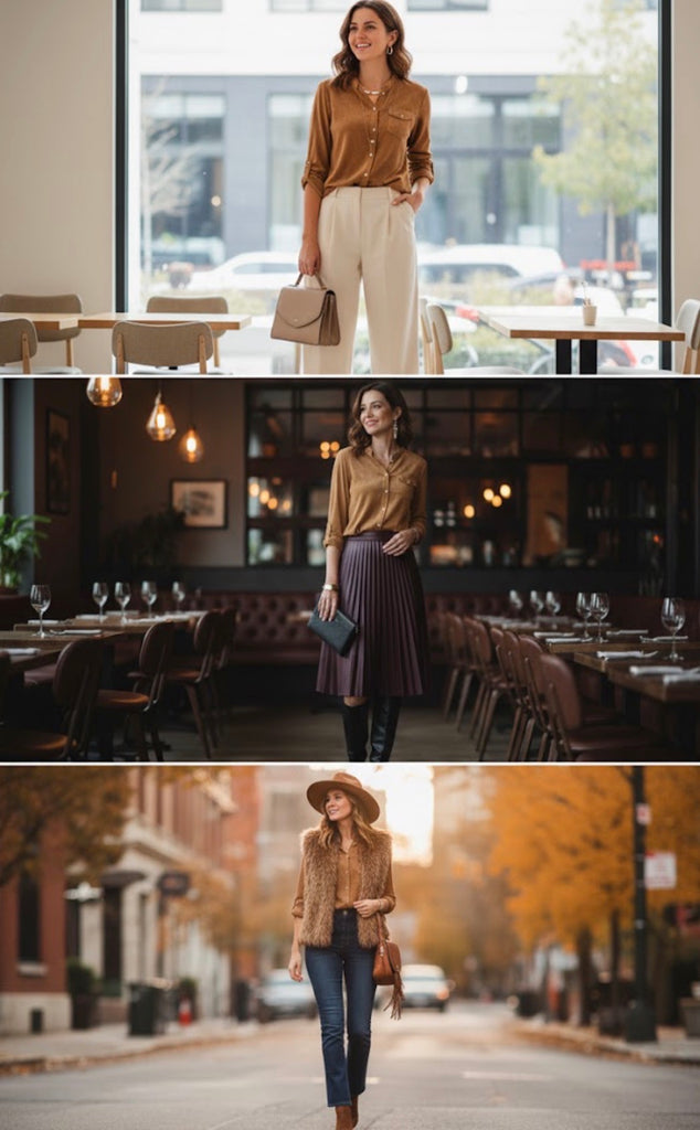This long-sleeved blouse features camel suede buttons, adding a touch of elegance to your wardrobe. The soft suede material offers a luxurious feel, while the folding design adds versatility to your looks. Elevate your style and comfort with our Suede Top Buttons.