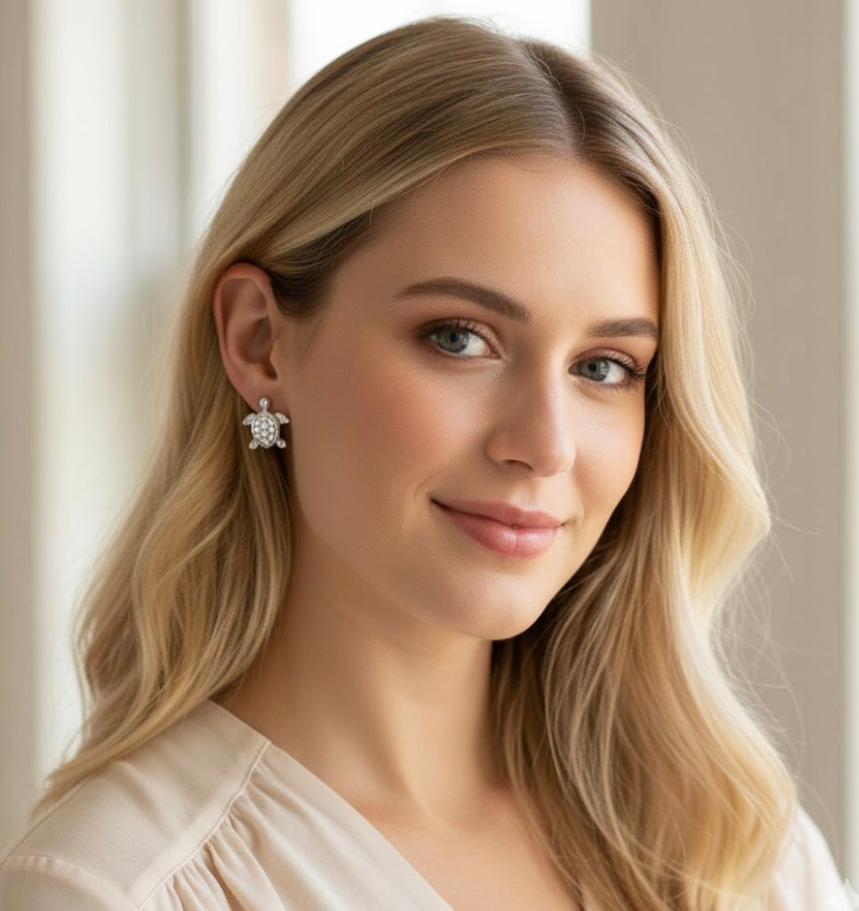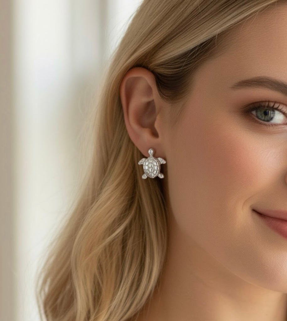Expertly designed and crafted for the fashion-forward beach goer, these Turtle Stud Earrings are a must-have accessory. Made with silver and gold plating, these earrings add a touch of elegance to any outfit. Perfect for a day at the beach or a night out on the town.